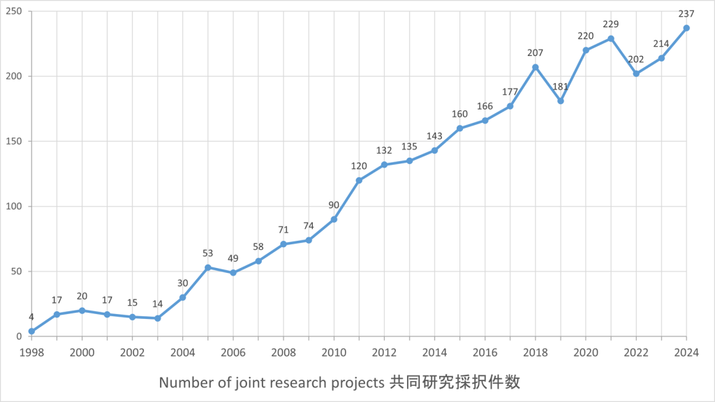 2024年度の共同研究利用システム(JoRAS)を通じた共同研究採択件数は237件で、1998年に空間データ利用を伴う共同研究を開始して以来、過去最多でした。