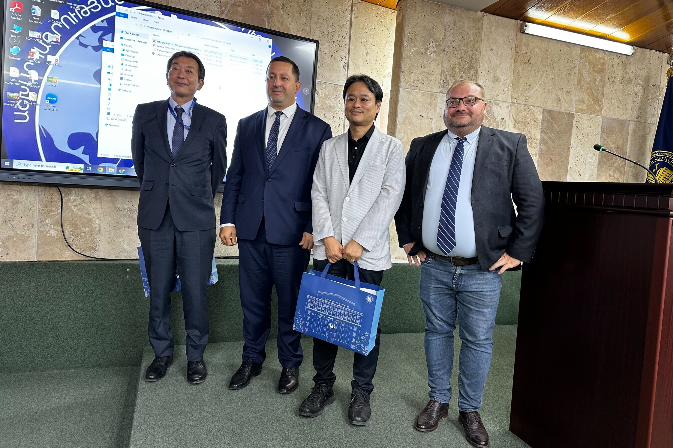 During the signing ceremony, the agreement was signed by Associate Professor Sargis Kelyan, Dean of the Faculty of Geography and Geology at YSU, and Professor Sekimoto, Director of our Center, in the presence of Assistant Professor Piloyan, Assistant Professor Iizuka, and other attendees. The event was conducted in a cordial atmosphere, and the signing was followed by an exchange of views among participants.