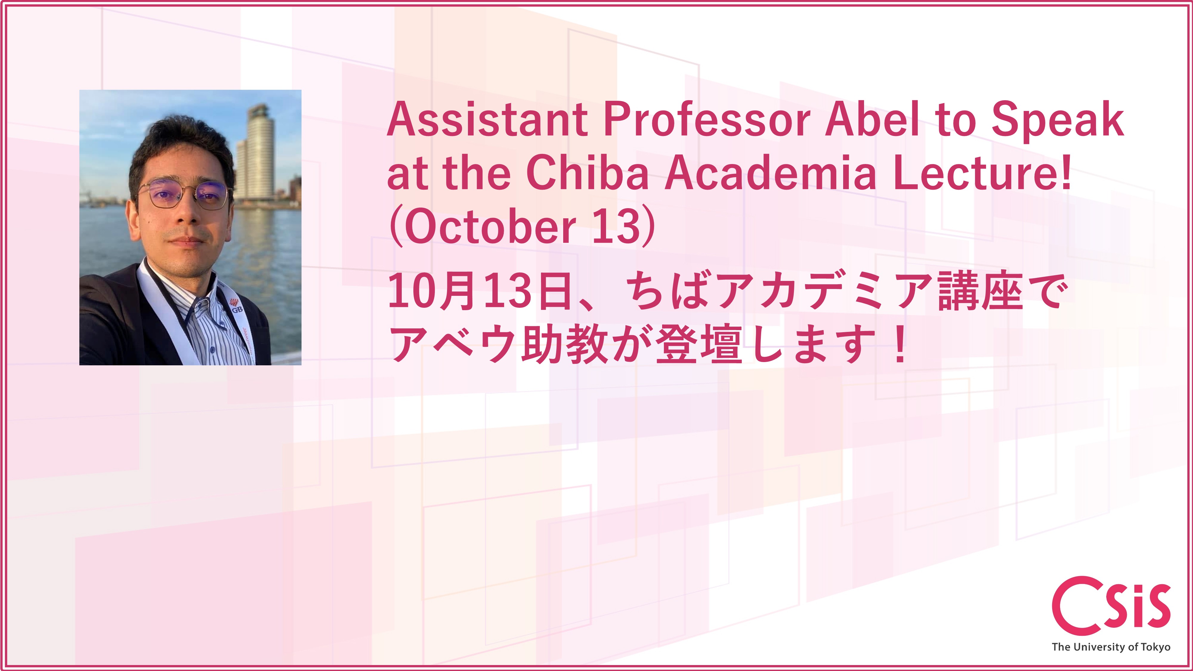 On Monday, October 13, 2025 (national holiday), Assistant Professor Abel Táiti Konno PINHEIRO from our Center will give a talk at the Chiba Academia Lecture held at the Sawayaka Chiba Prefectural Plaza.