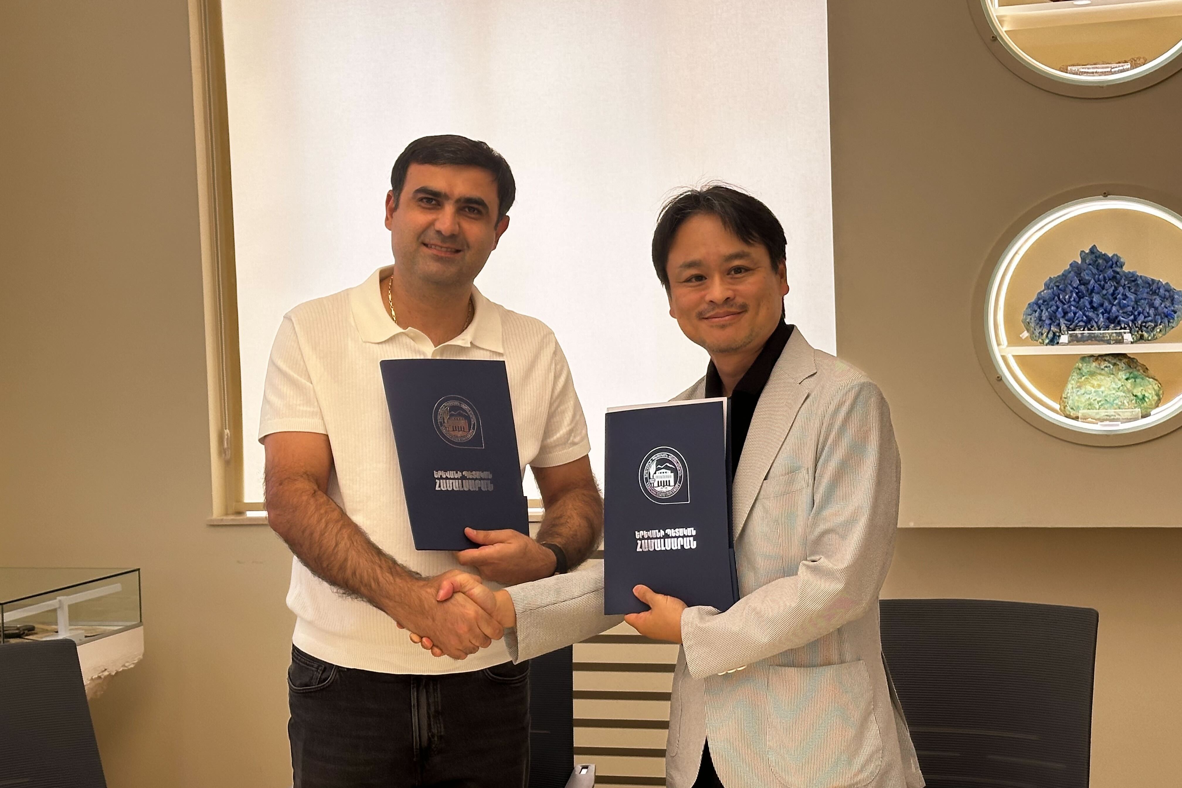 本協定は、YSUにSSUIが新設されたことを契機に締結されたもので、両機関の研究連携を一層強化し、共同研究や研究者の交流を促進することを目的としています。SSUIは、YSU地理学・地質学部のArtak Piloyan助教と当センターの関本義秀教授・飯塚浩太郎助教が中心となって進めているアルメニア共和国教育・科学・文化・スポーツ省 高等教育・科学委員会(the Higher Education and Science Committee, Ministry of Education, Science, Culture and Sports of the Republic of Armenia)のリモートラボ助成プログラムの一環として設立されました。